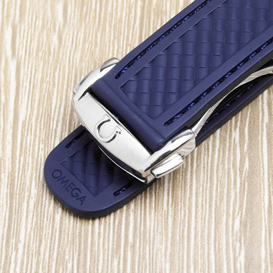 20MM 22mm Blue Omega Speedmaster & Seamaster Silicone Rubber Band/Strap With Omega Deployment Clasp
