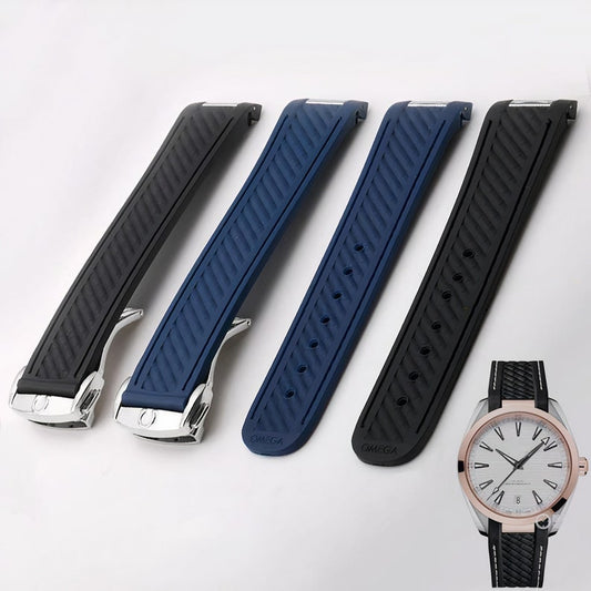 20mm BLACK / BLUE Curved Rubber Strap For Omega Seamaster Aqua Terra or Seamaster 300 Pro For Omega watch Band Strap Bracelet