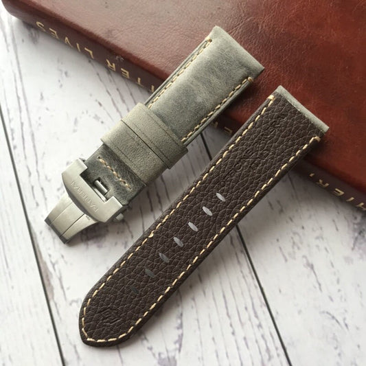Panerai Officine 24mm Leather Watch Band Strap Beige, Brown With Deployment Clasp