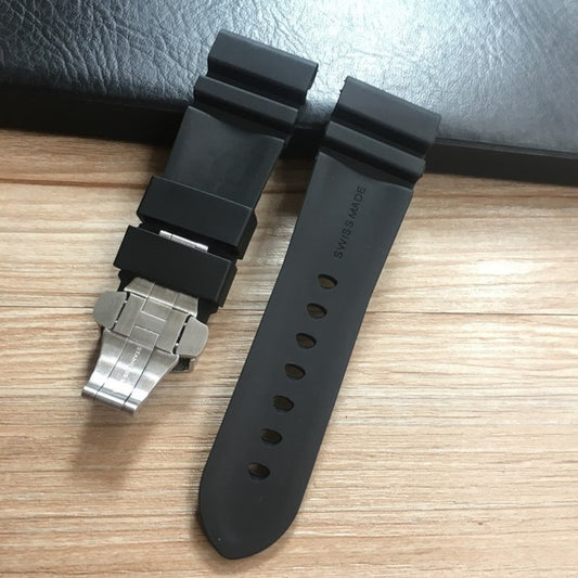 Panerai 24mm 26mm Military Rubber Band Strap Deployment Clasp Buckle for Luminor Submersible Diver Watch