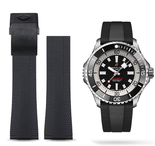 22mm Breitling Black Rubber Strap for SuperOcean 42 Black Dial Band
